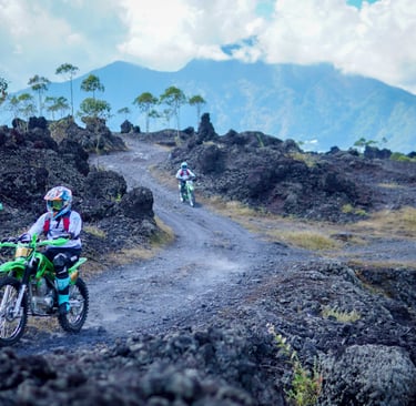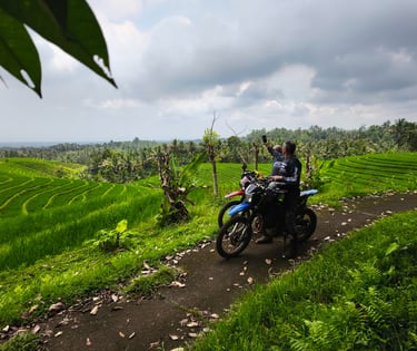 Experience thrilling motorcycle trips through Bali's : forests natural, BLACKLAVA, rice field view, water fall and sunset beaches with diverse terrain challenges.